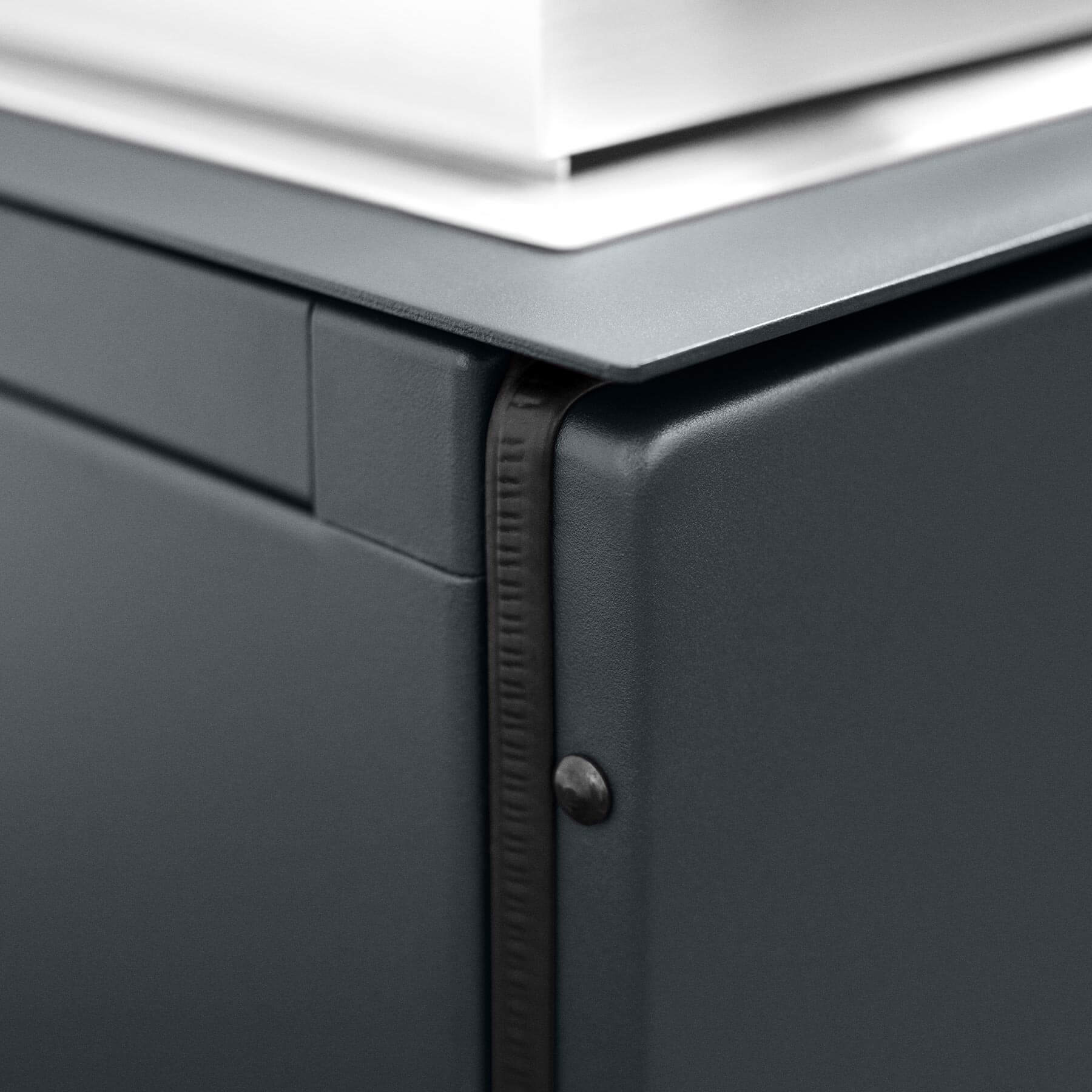Skabet er designet med en avanceret vandtæt membran, som sikrer, at lågerne slutter tæt og beskytter skabets indhold mod fugt og vejr. Perfekt til det nordiske klima, hvor beskyttelse og holdbarhed er essentielt.