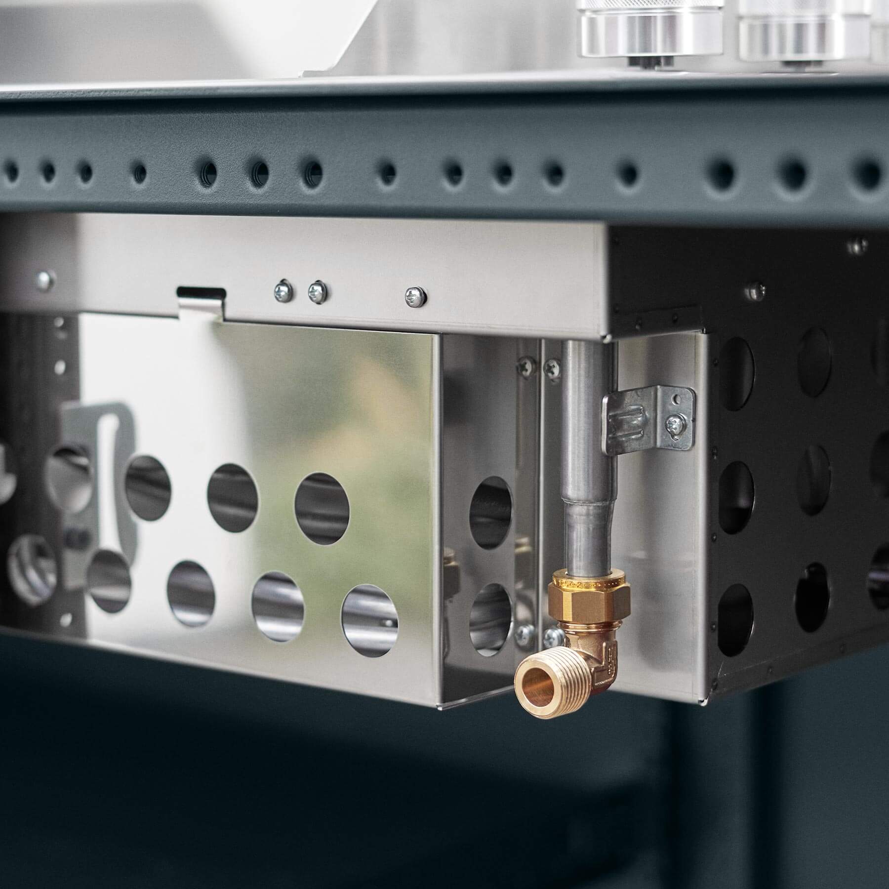 Den diskrete gasflaskeholder inde i skabet beskytter din gasflaske og sørger for, at dit grillområde altid ser ryddeligt og stilfuldt ud. En praktisk og elegant løsning, der sikrer maksimal sikkerhed.